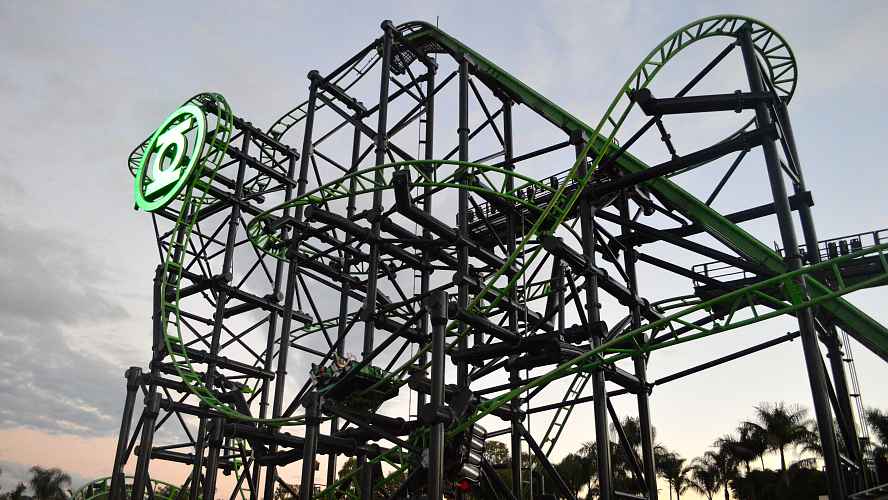 There's a lot of roller coaster goodness towering over the front of Movie World.