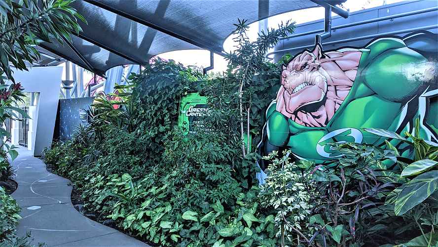 After many years of operation, the gardens in the queue have become very lush. It truly is the 'Green' Lantern.