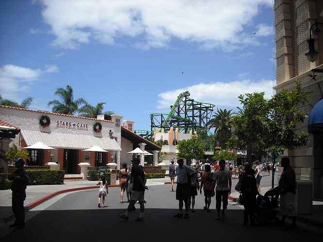 A slice of the main walkway into the park has been taken to give Green Lantern Coaster an exit.