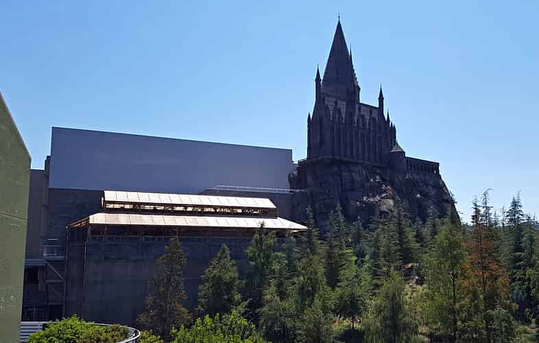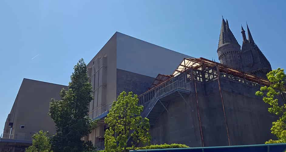 Whilst the box is not as noticeable within the Wizarding World precinct, it does break the illusion a bit from most other areas of the park.