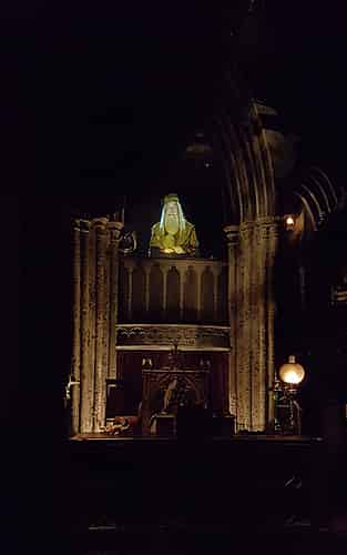 Soon you enter the castle proper the Hogwarts founders statue greets you.