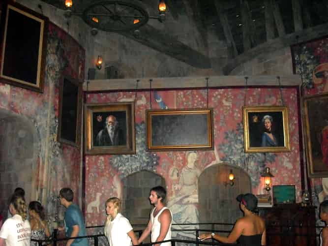 The halls of the school are filled with talking portraits. The screens behind them have had a special coating put on, that gives the effect of it actually looking like a talking oil painting.