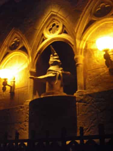 As you approach the loading area, hogwarts famous "Sorting Hat" rattles off a poem explaining the saftey instructions for the ride.