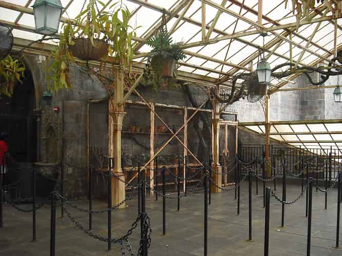 A large section of the queue goes through the Herbology greenhouses. Every major theme park ride inevitably has a section of switchbacks like this, but obviously an effort has been made to work it in with the overall theme.
