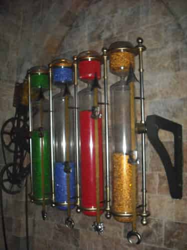 Hogwarts has four houses, and these hourglasses keep track of the points earned by each house over the year.