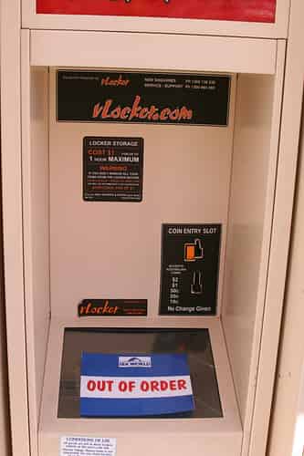 Part of the fun of paying to store your loose items while riding Jet Rescue is finding a locker that work.