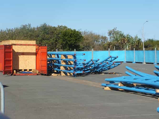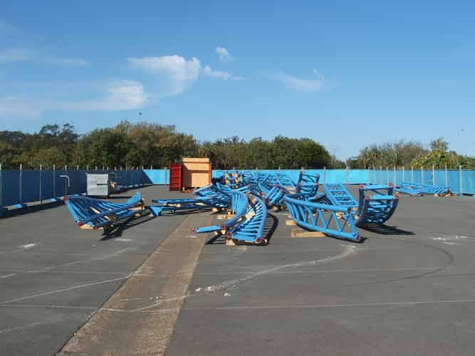 More parts of the ride have arrived. In the background you can see the tanks which store compressed hydraulic fluid that powers the launch.