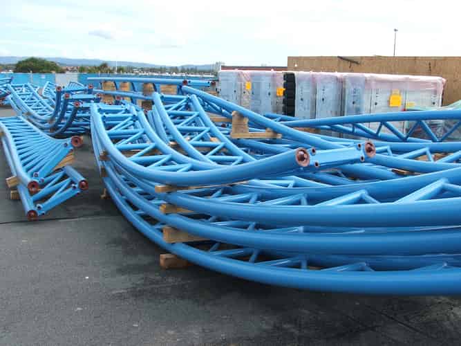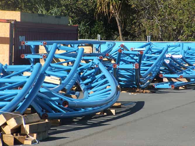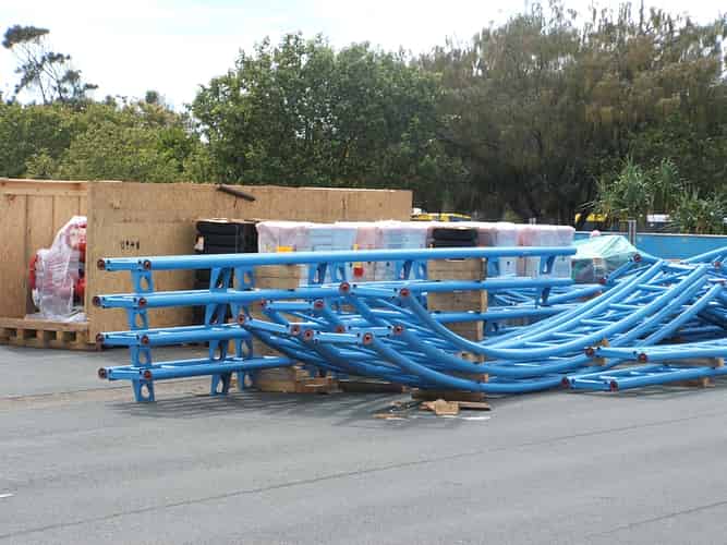 More parts of the ride have arrived. The curved track indicates this coaster will contain a number of straight hills which its predecessor, Motocoaster, didn't have.