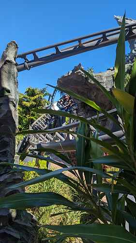 The ride is comprised of two distinct halves. The section after the first launch comprises of tight turns and inversions amongst rocks within the raptor pen.