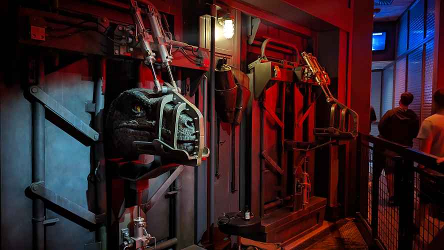 At one point you pass through a medical bay, where raptors are in a crush, receiving their daily checkups.