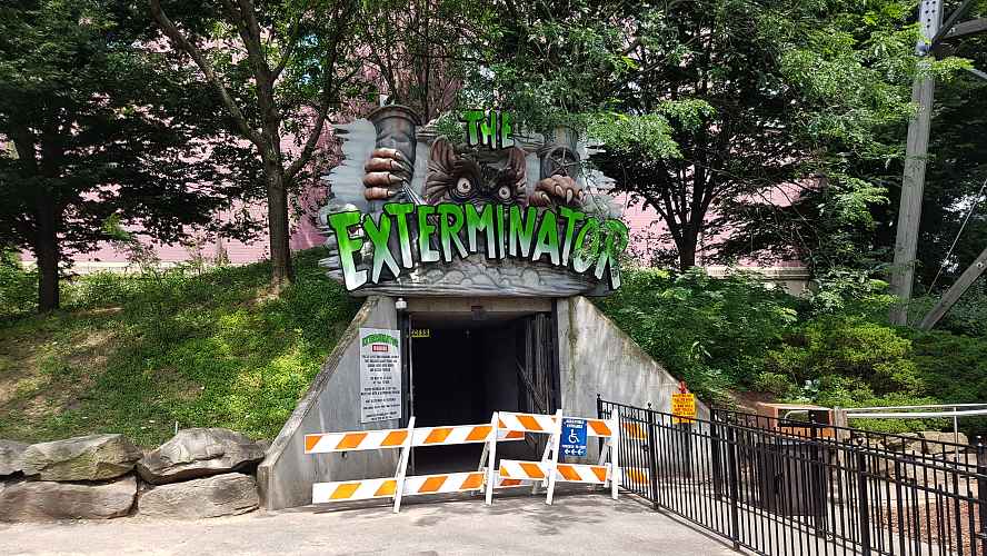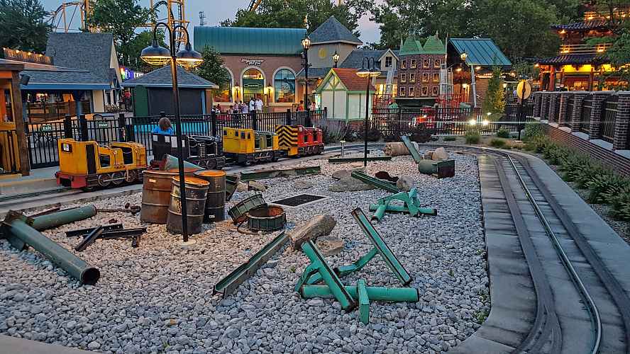 Bits of scrap metal from Steel Phantom decorate the ride area.