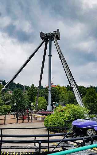 The tallest ride in Thomas Town is Cranky's drop tower.