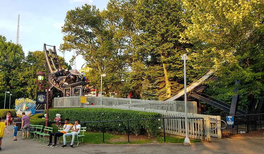 Crazy Trolley is a nod to Kennywoods beginnings as a "Trolley Park", in other words an amusement park built at the end of a Trolley (Tram) line in order to encourage people to use the line.