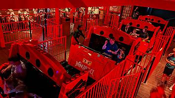 Ninjago is a 3D dark ride where guests use hand gestures to shoot at targets on screens.