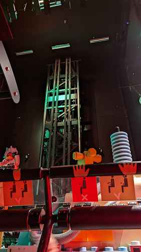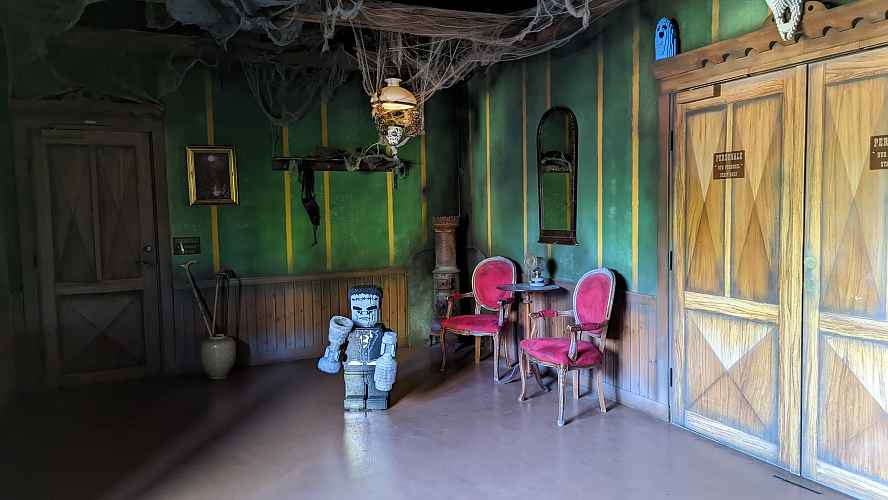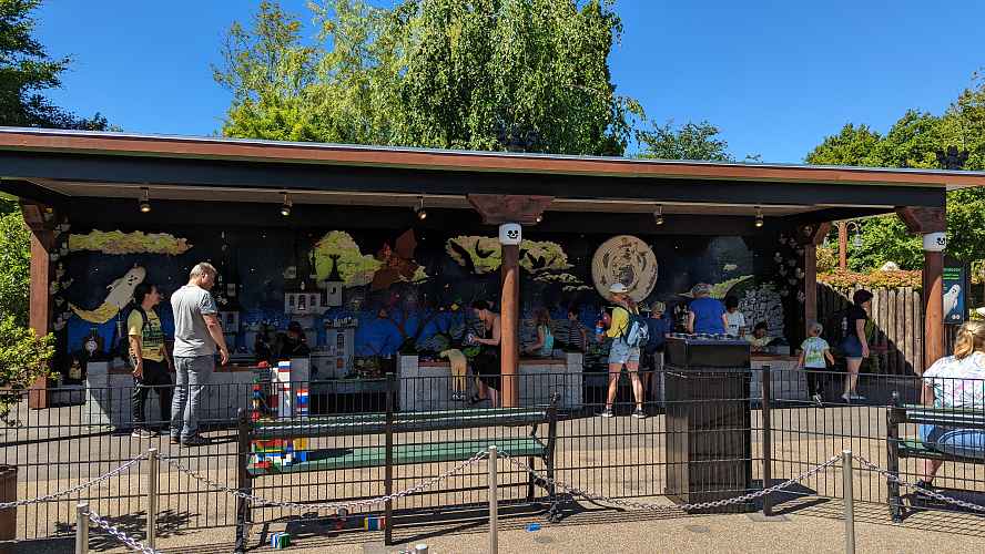The queue area features a spooky themed Lego play zone for kids to use while the parents wait.