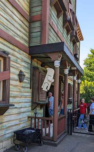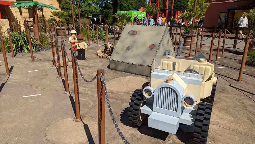 This photo sums up the Legoland theming style. Realistic props mixed in with massive Lego models made of thousands of bricks.