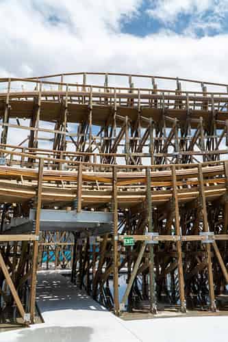 The main entrance and exit for the ride passes straight through the structure. Signage and theming will surround this pathway.