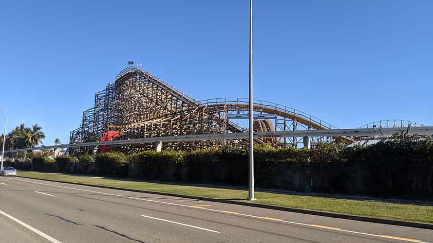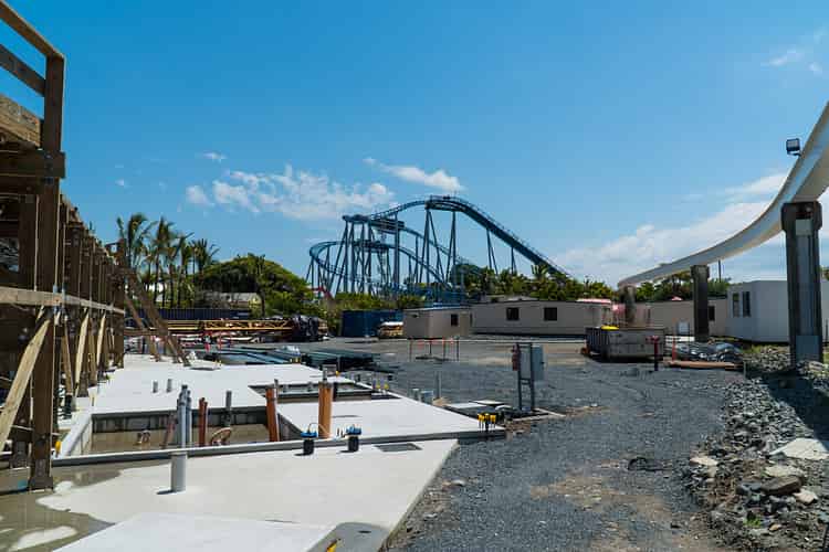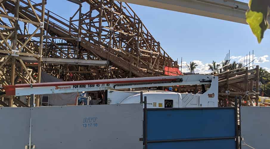 No works have commenced yet on the station building, in contrast to Steel Taipan, station up at Dreamworld, which already is well underway.