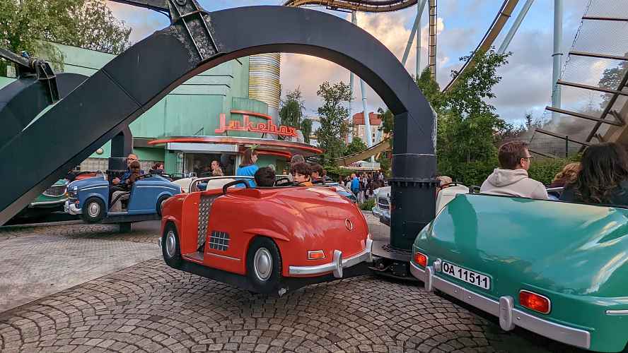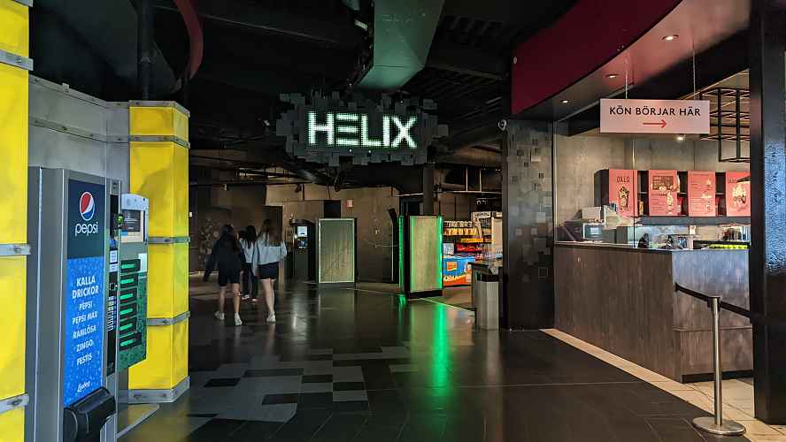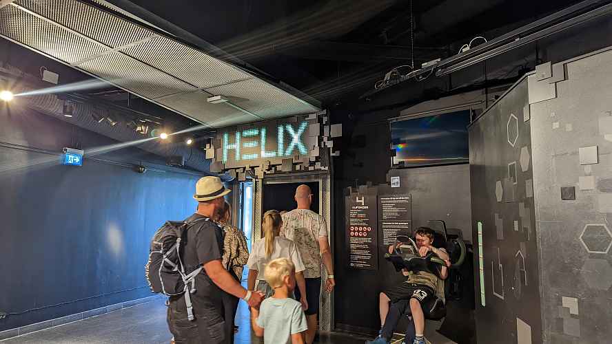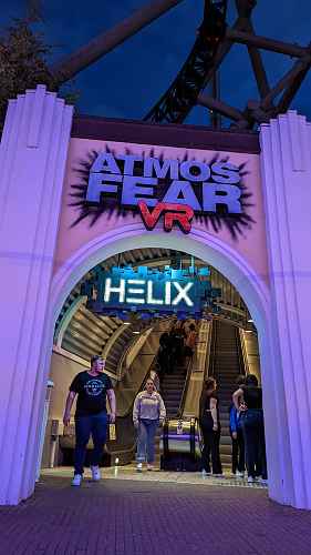 The entrance to the helix queue is somewhat low key, in an indoor arcade area.