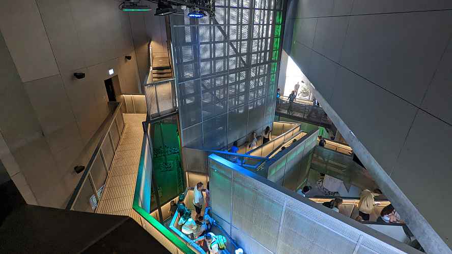 The queue for Helix is a sight to behold, an ultra modern labyrinth across several levels.