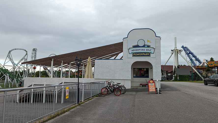 Overloooking Typhoon 360, the Minigolf course, and the Pitts Special roller coaster.