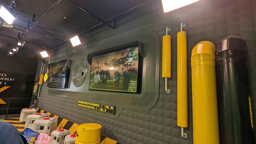 Each train seats 12. The ride begins with a few 'pre launch' dark ride scenes, with fire and electrical effects.