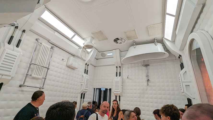 A couple of the rooms give the sense of floating upside down in a space habitat module.