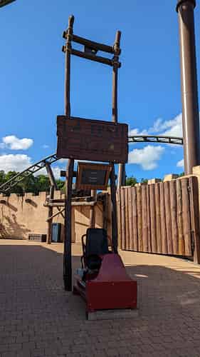 A test seat allows you to check the lap bar for fit before joining the queue.