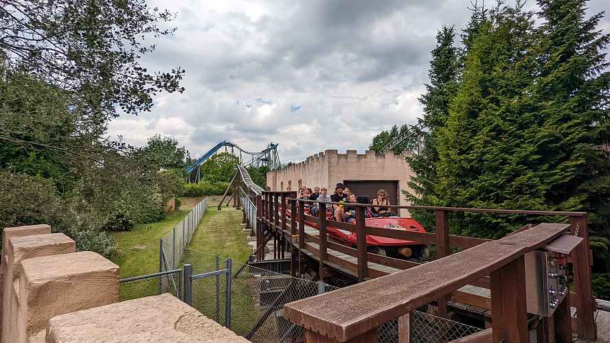 The second airtime hill is quite sharp, creating strong negative g forces. Just look at the hair of the riders flying up!