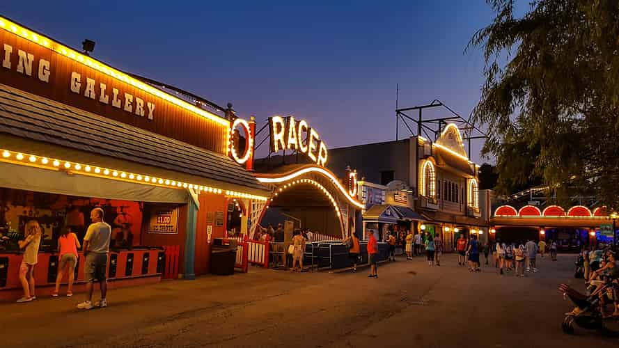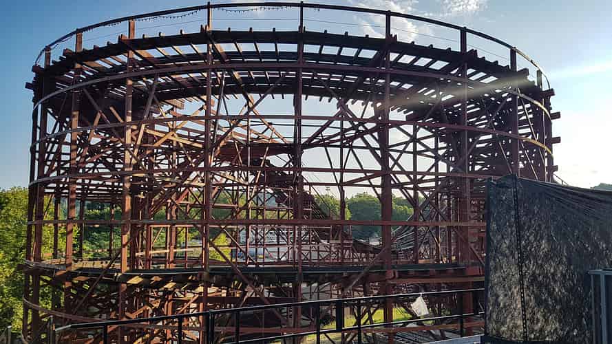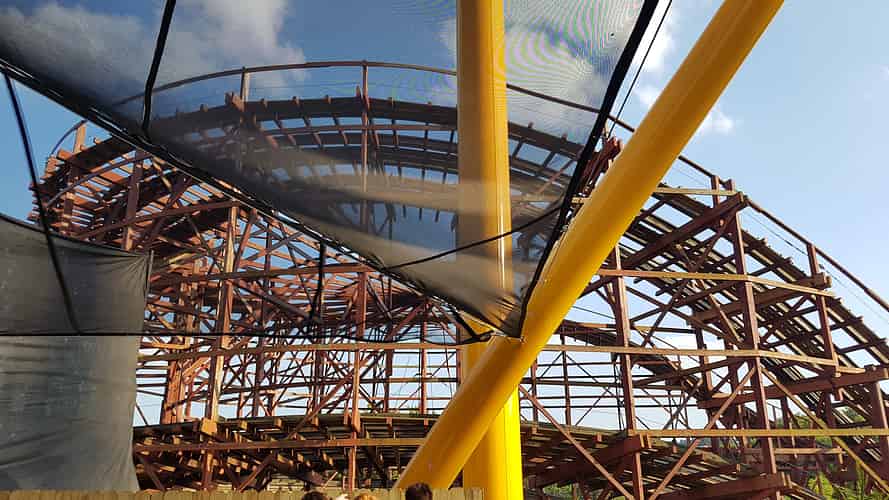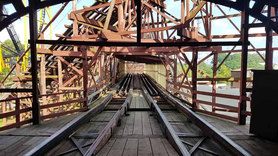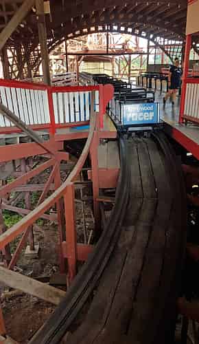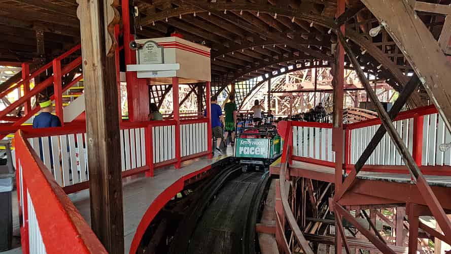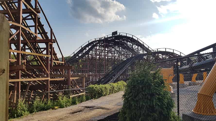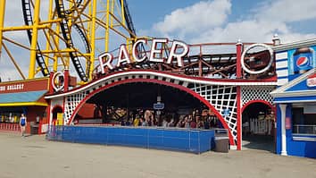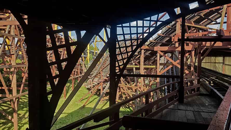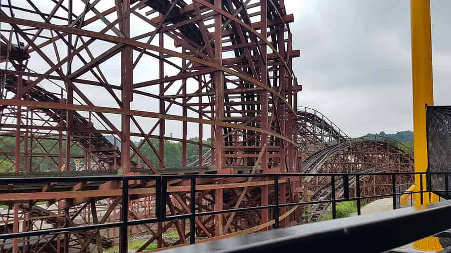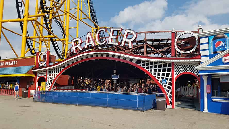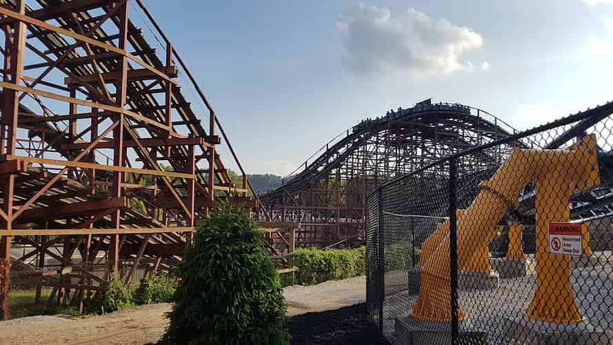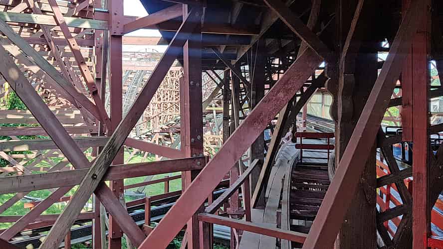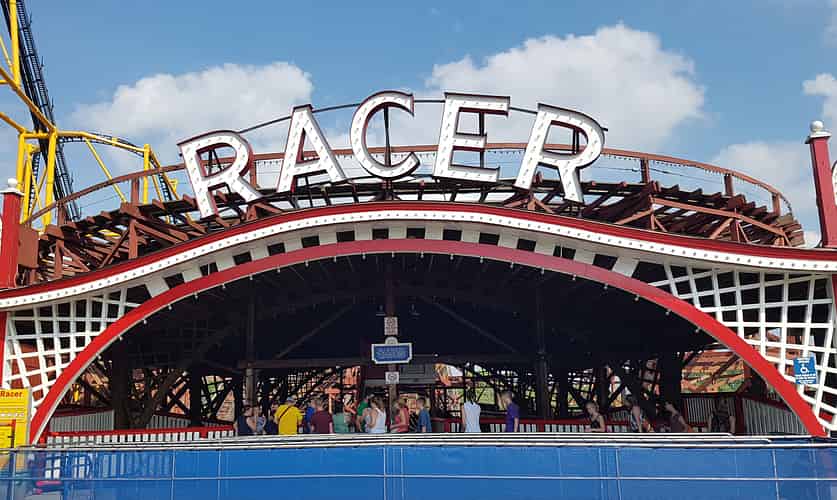 Racer with Jack Rabbit in the distance. Perhaps only Blackpool Pleasure Beach in the UK has an equivalent collection of classic wooden coasters.
