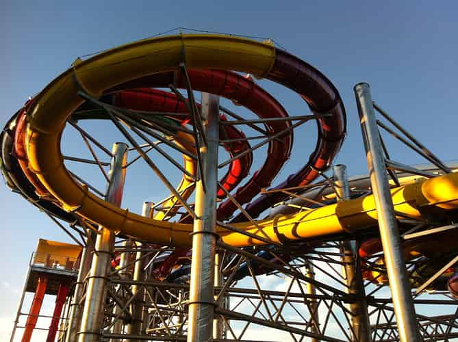 For a bit of visual interest the slide features translucent tubes, so you can watch riders defy gravity.