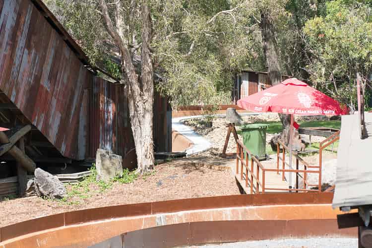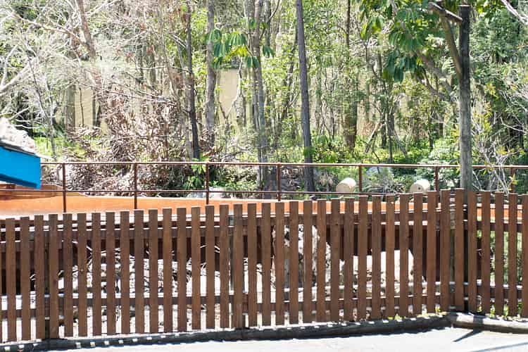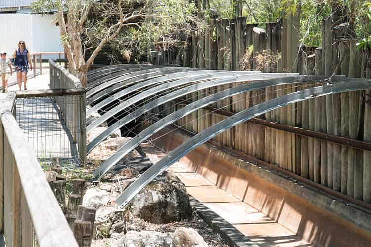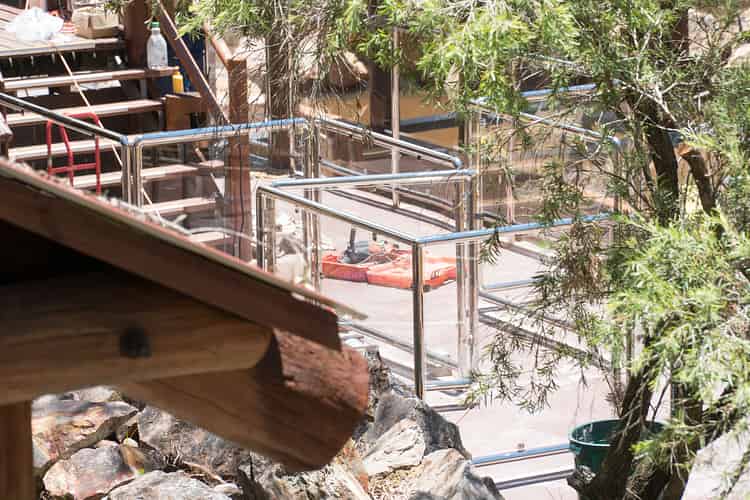 Beyond the fence, catwalks and railings were installed on the turn after the final drop. They've been painted brown to fit in with the surrounds.