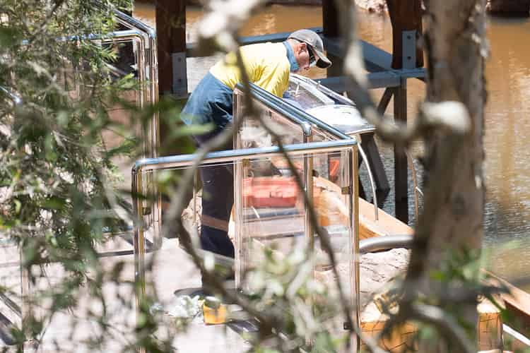 The bizarre sliding awnings are the defining feature of the forthcoming Log Ride reopening and they raise a lot of interesting questions. Such as how staff will deal with the repetitive manual operation of these heavy steel devices. There don't appear to be any guide wheels, bearings or mechanisms to lessen the physical exertion needed to slide this into and out of position.