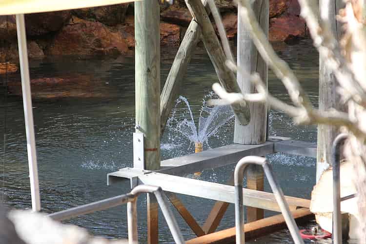 The fountain aerates and keeps the water surface moving to prevent plant and algae growth.