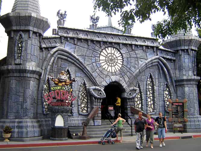 Much of the appeal Scooby-Doo Spooky Coaster comes from its use of suprise....The fairly small entrance facade manages to disguise the true scale of the ride within.