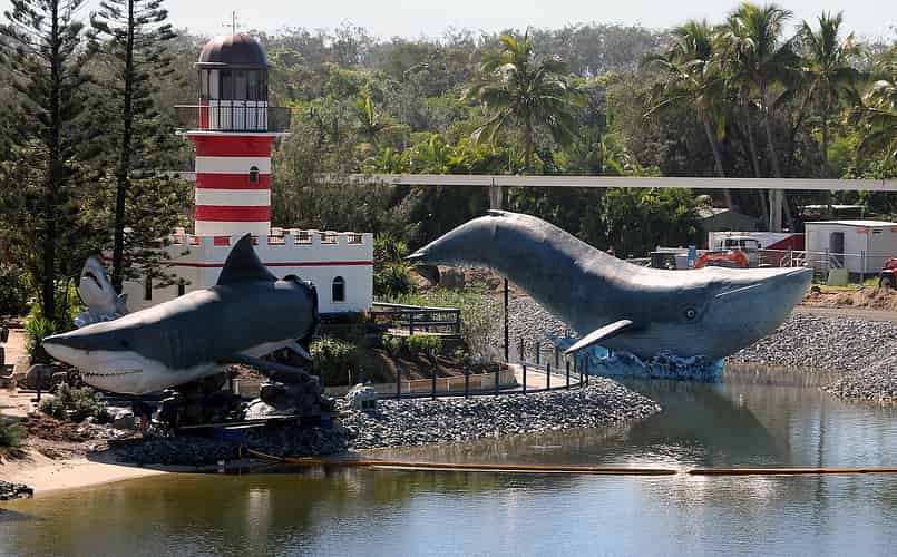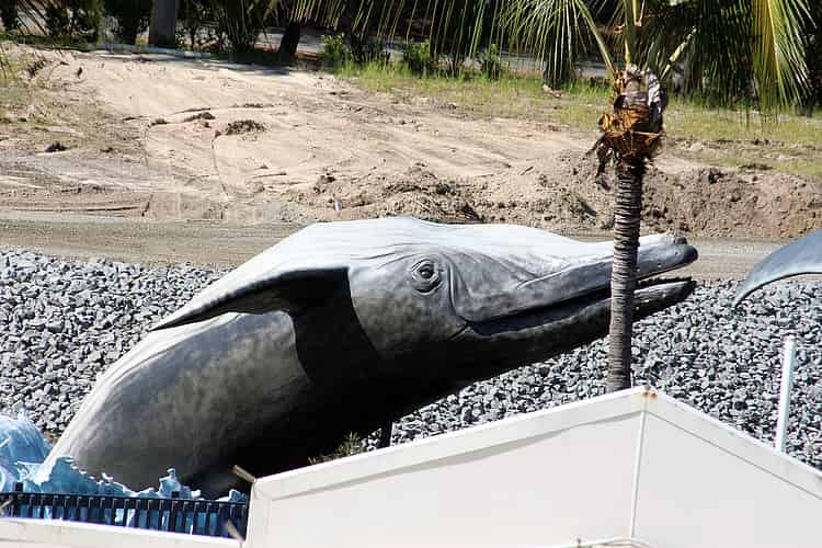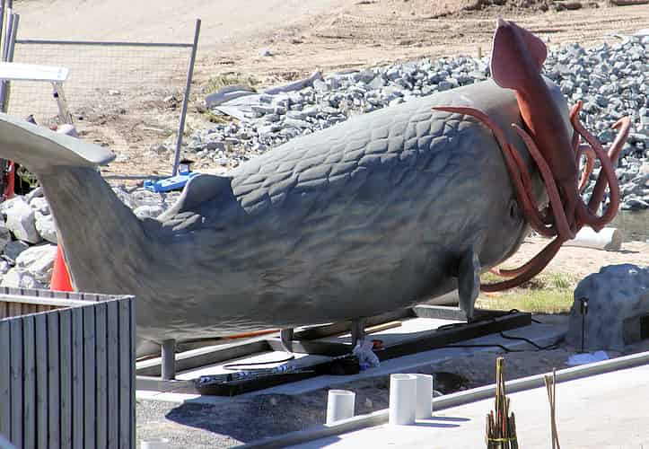 The humpback is situated in the lake, but they've gone with a bizarre fibreglass water splash effect that seems to undermine the realism of the sculpture.