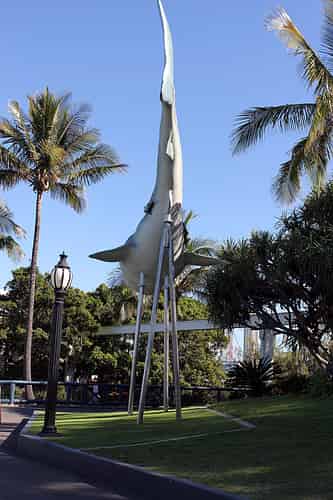 Every other sculpture sits on the ground or otherwise integrated into its surrounds. Meanwhile they have stuck this lone whale shark on a few poles off by itself and surrounded it with astroturf.