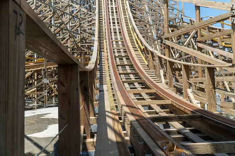 The track on wooden coasters is assembled from layers of southern yellow pine. It's incredibly simple yet effective in its design, which is why it's essentially unchanged in a century.