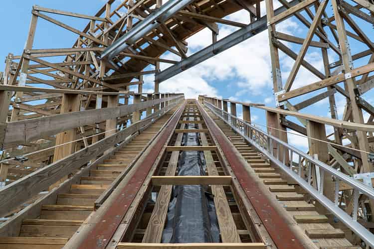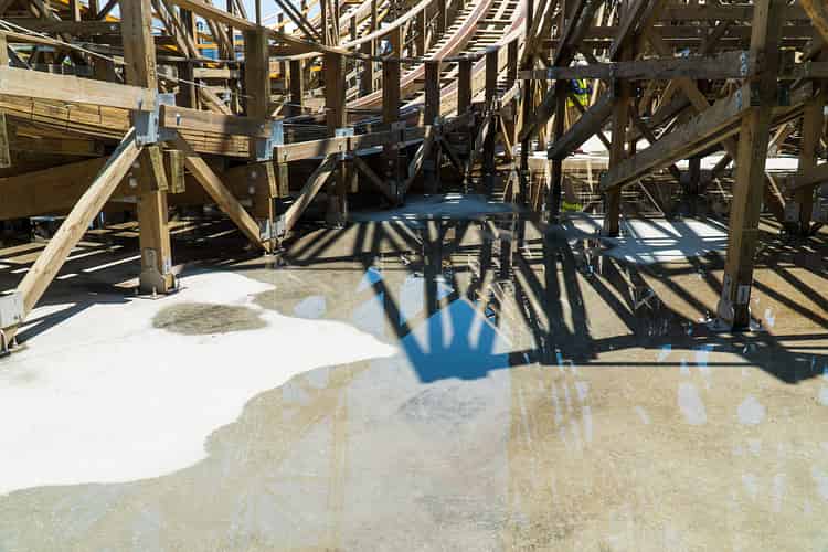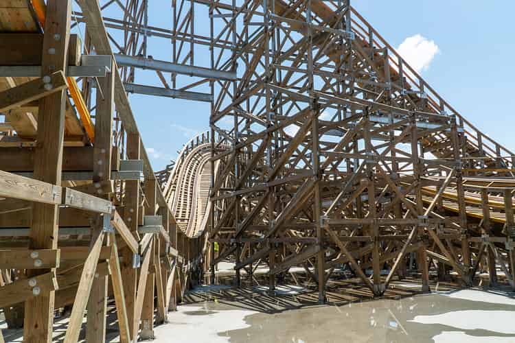 Leviathan is one of the first wooden coasters in the world to feature a single concrete slab for the entire ride.