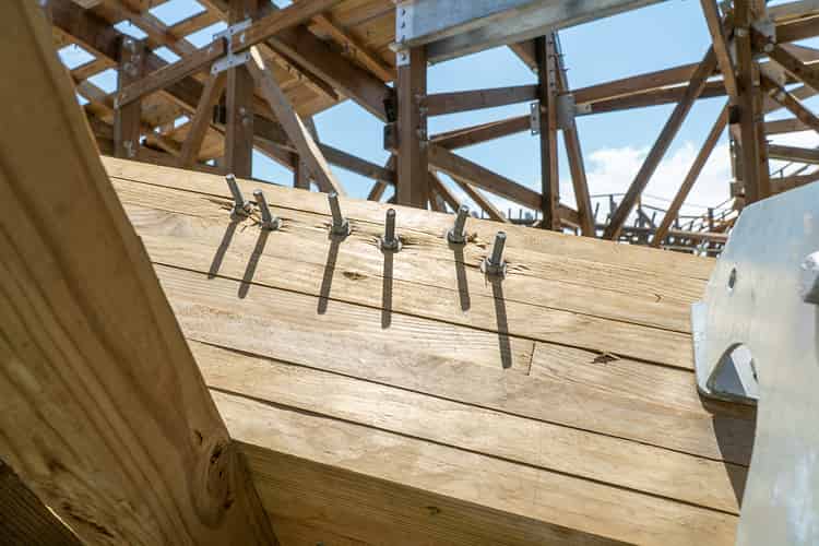 Spacers run along much of the ride's course. This is to ensure the track keeps its shape and retains its tight tolerances as the timber settles.