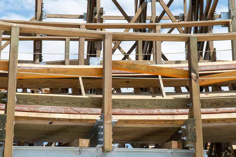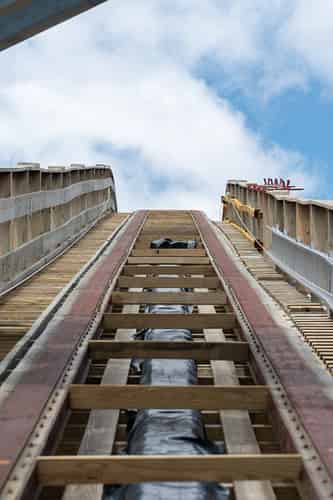The sheer amount of timber supporting the lift hill is impressive up close.