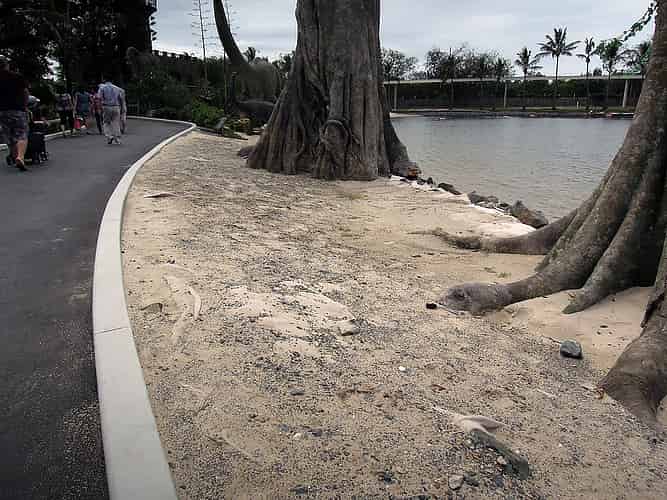 The 'beach' at Dinosaur Island has really deteriorated in the 9-odd months it has been open. I guess no more routine sweeping of the sand?