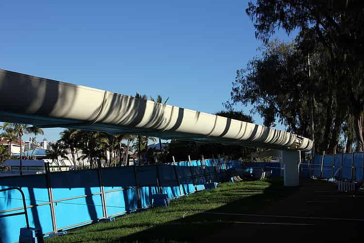 Work is taking place on the panels that protect fingers, limbs and other appendages from the monorail trains in lower sections of track.