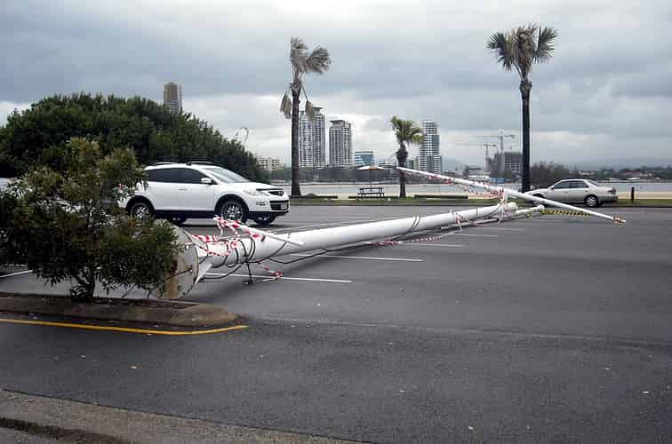 The flag mast has been taken down and is lying in the car park.