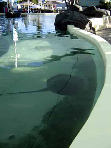 The lagoon is divided by a rock wall. The far end contains the larger rays, whilst the closer end contains smaller ones (Some no larger than a saucer).