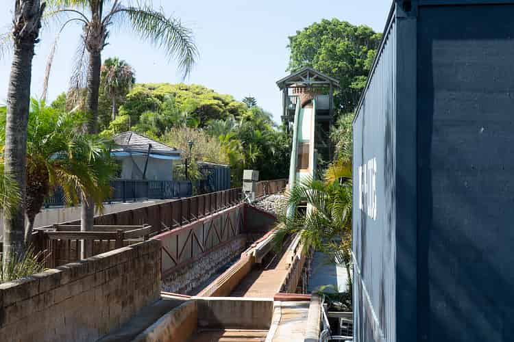 The Flume Ride is looking as sad and dilapidated as ever, some four years on from its closure.