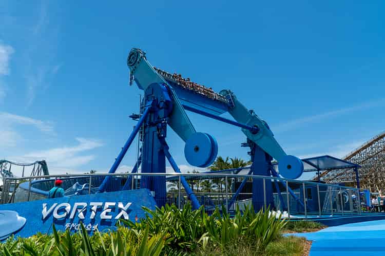 Storm Coaster and Leviathan take over from a skyline that was once dominated by Bermuda Triangle and Corkscrew.