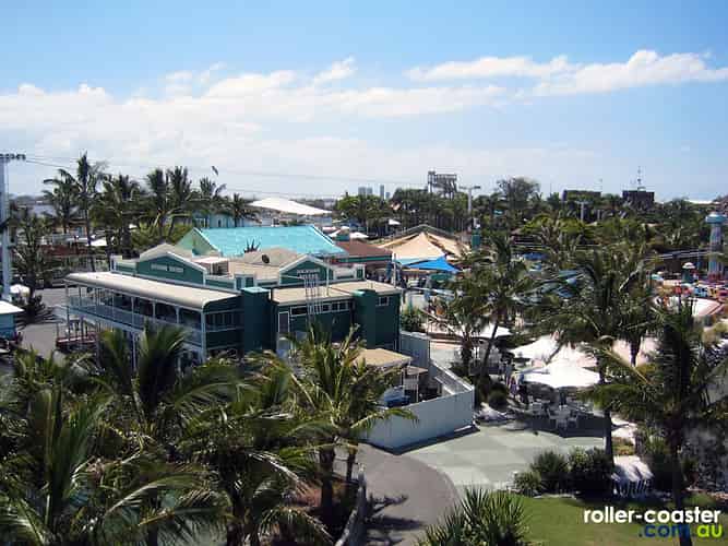 It is located in the middle of the park, overlooking the ski lake and a dolphin pool.