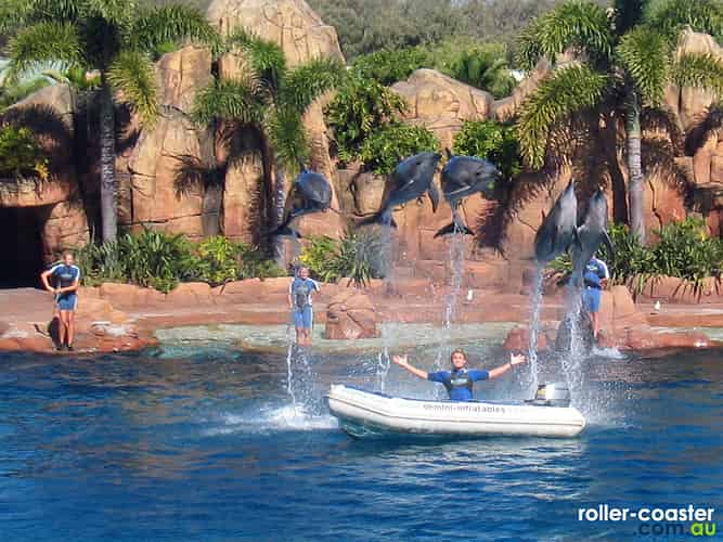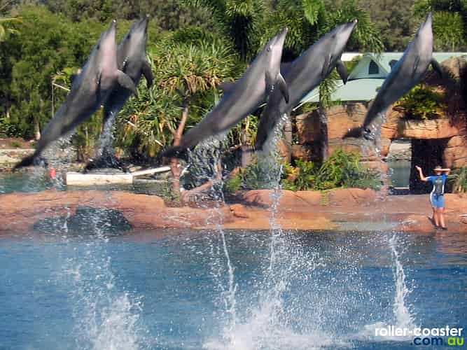 The "Best of Mates" show at Sea World, which showcased a variety of tricks from several different species of dolphins, including Bottlenose dolphins and Pilot whales. This was found where "Quest for the Golden Seal" is now located.