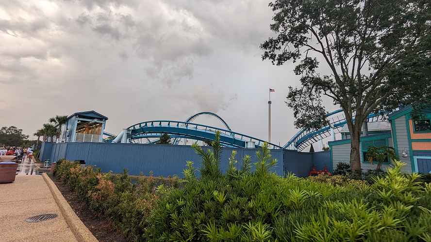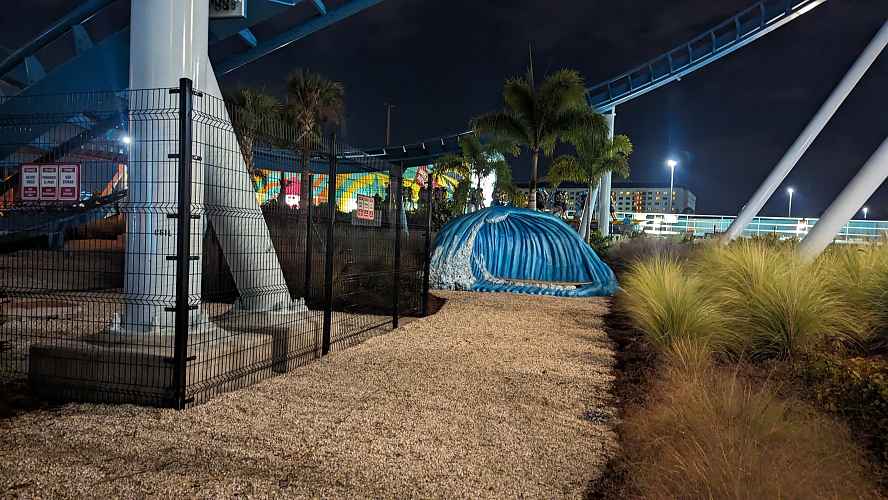 Simple beachy landscaping surrounds the ride.